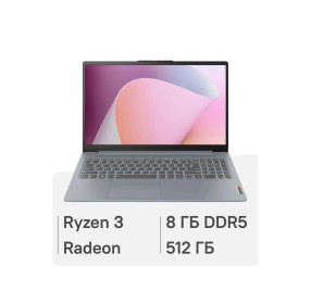 Ноутбук Lenovo IdeaPad Slim 3 15AMN8 15.6", 2025, IPS, AMD Ryzen 3 7320U 2.4ГГц, 4-ядерный, 8ГБ LPDDR5, 512ГБ SSD, AMD Radeon 610M, без операционной системы, серый